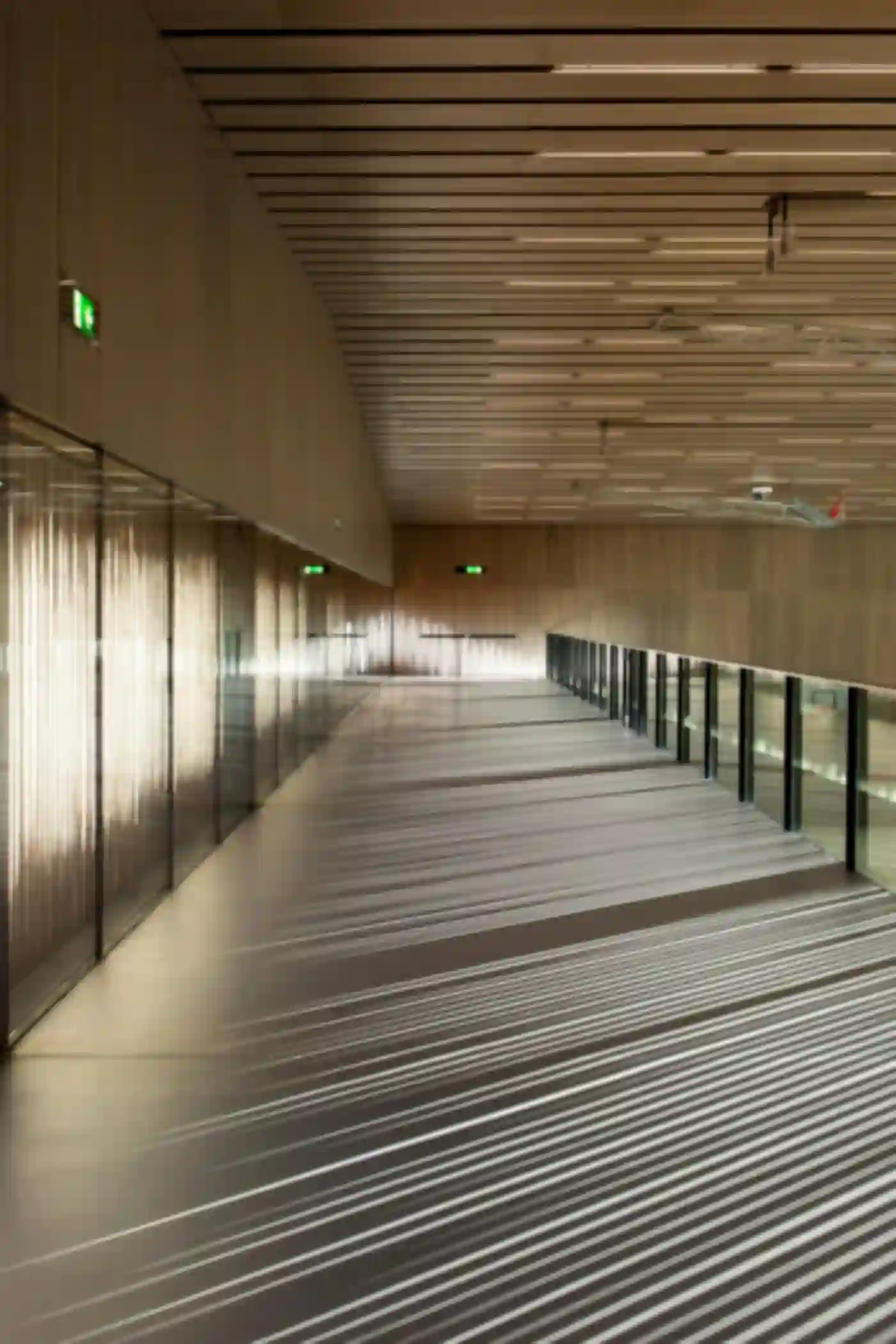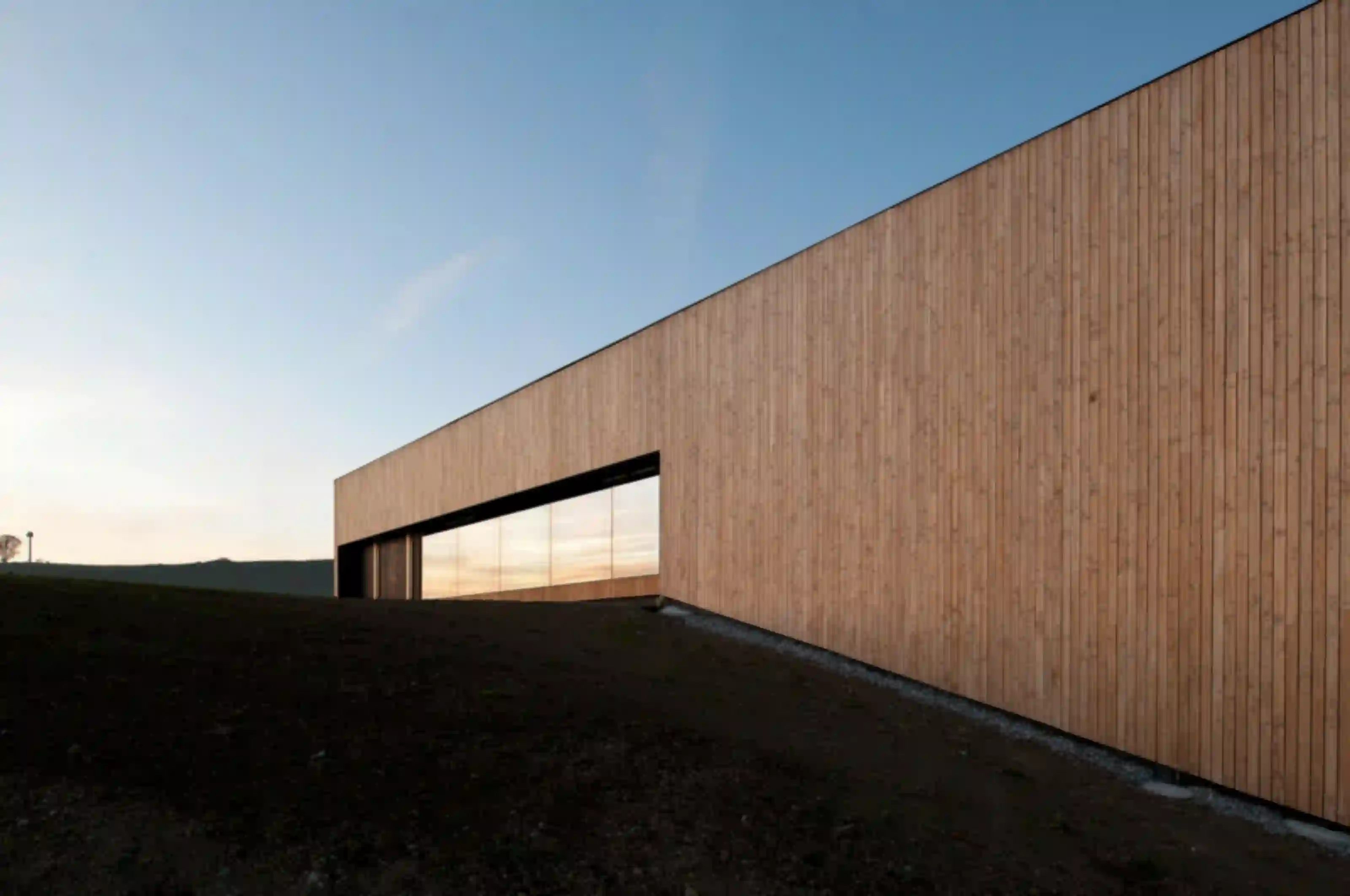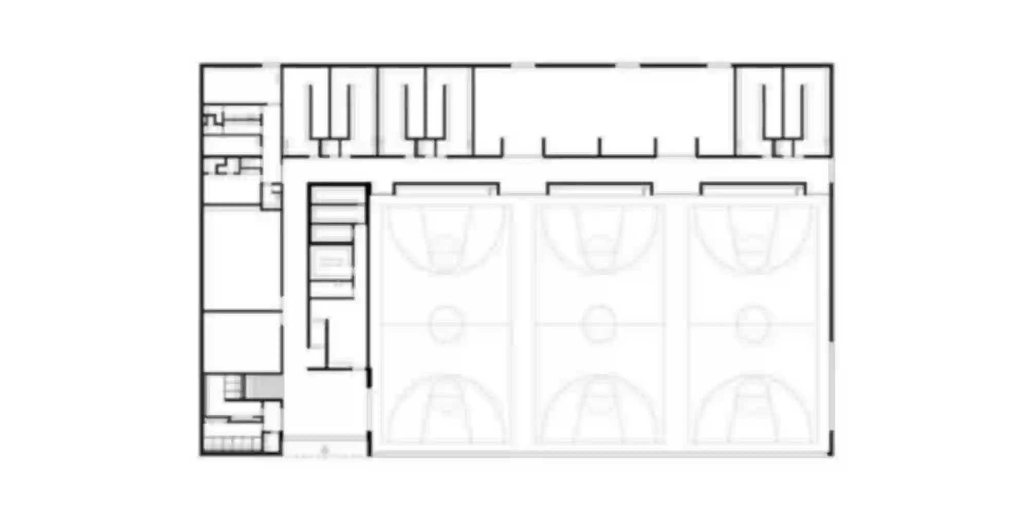 C’est dans un environnement paysager vallonné, au pied des Préalpes, que vient s’implanter sur une butte existante la nouvelle salle de sport triple de Châtel-St-Denis. Entre champs et prairies se confond dans le paysage la construction caractérisée par deux longs pans de toiture faiblement inclinés. La salle est réalisée essentiellement en charpente bois, qu’il s’agisse de la structure de la toiture, des façades ou du bardage extérieur. Le traitement des façades, leur matérialisation et l’exécution des détails confèrent au nouveau bâtiment un caractère unique.