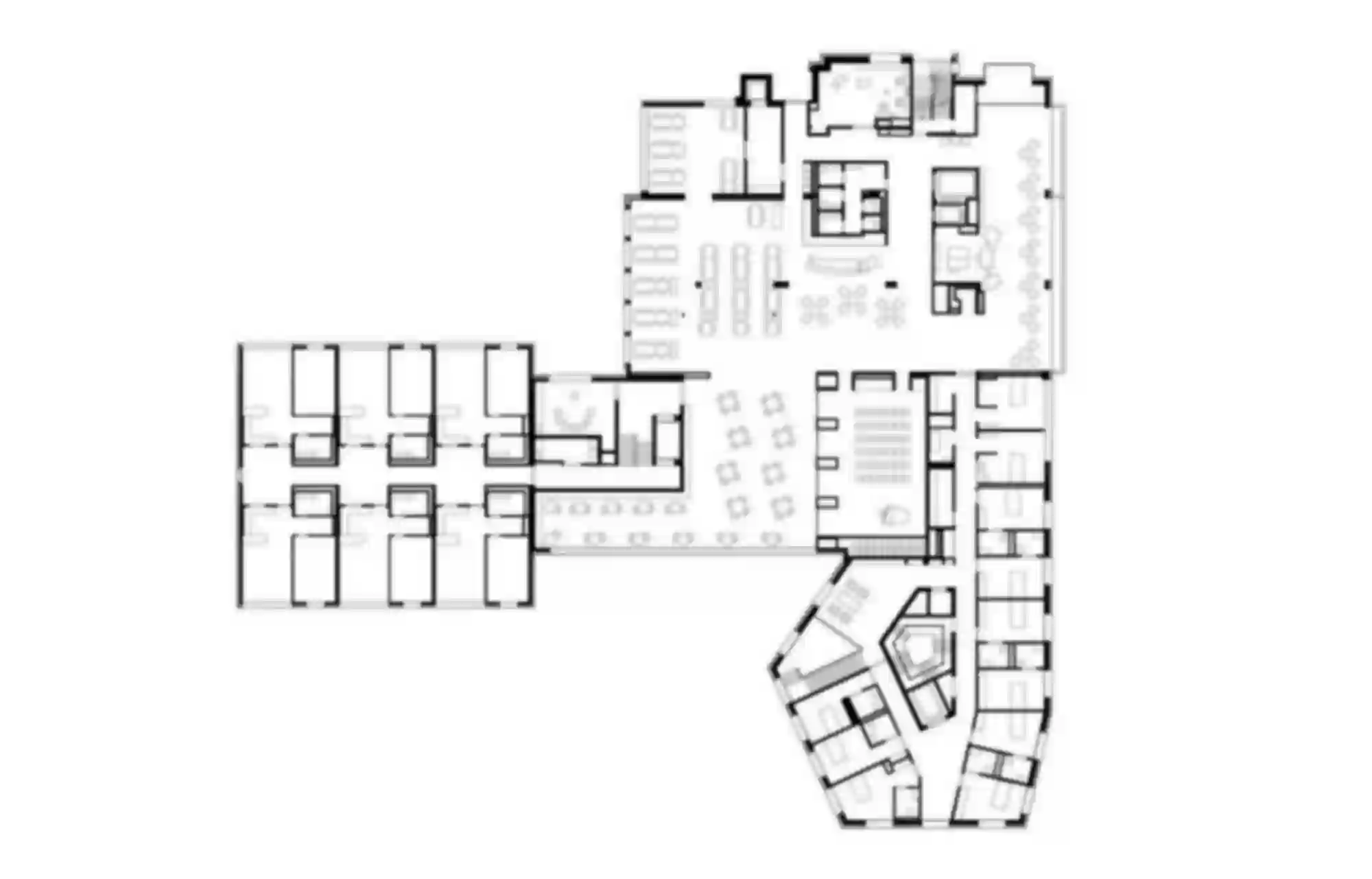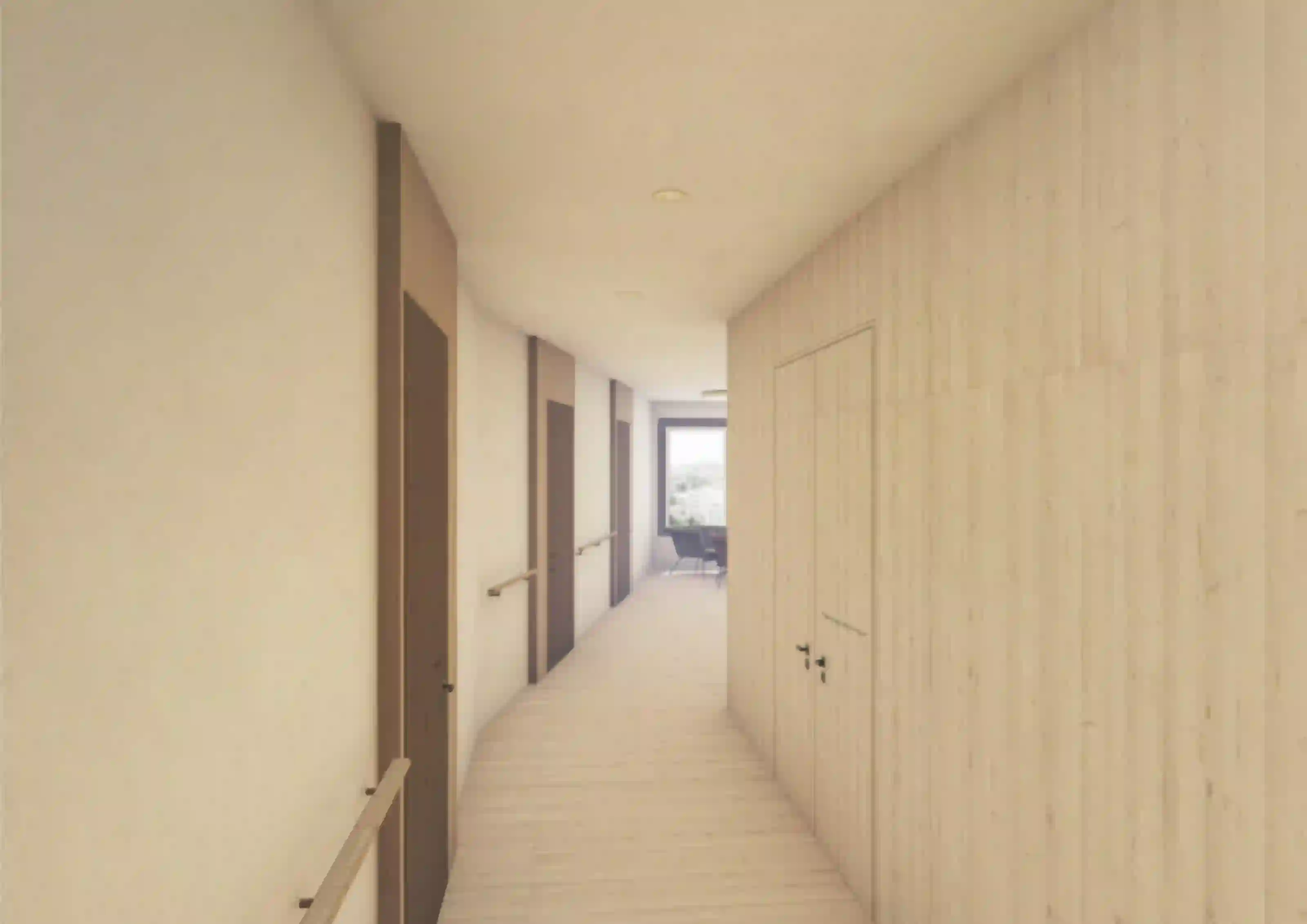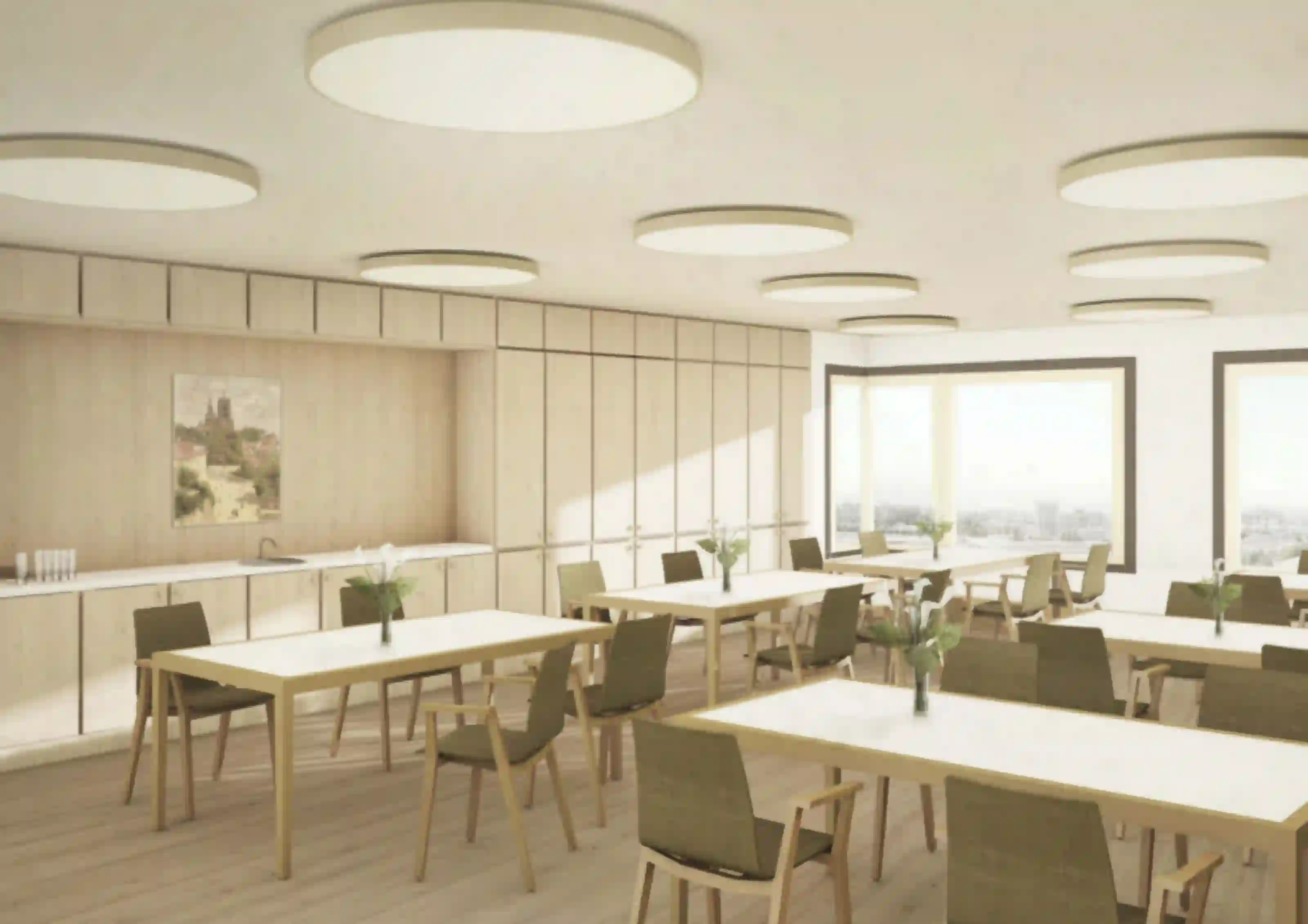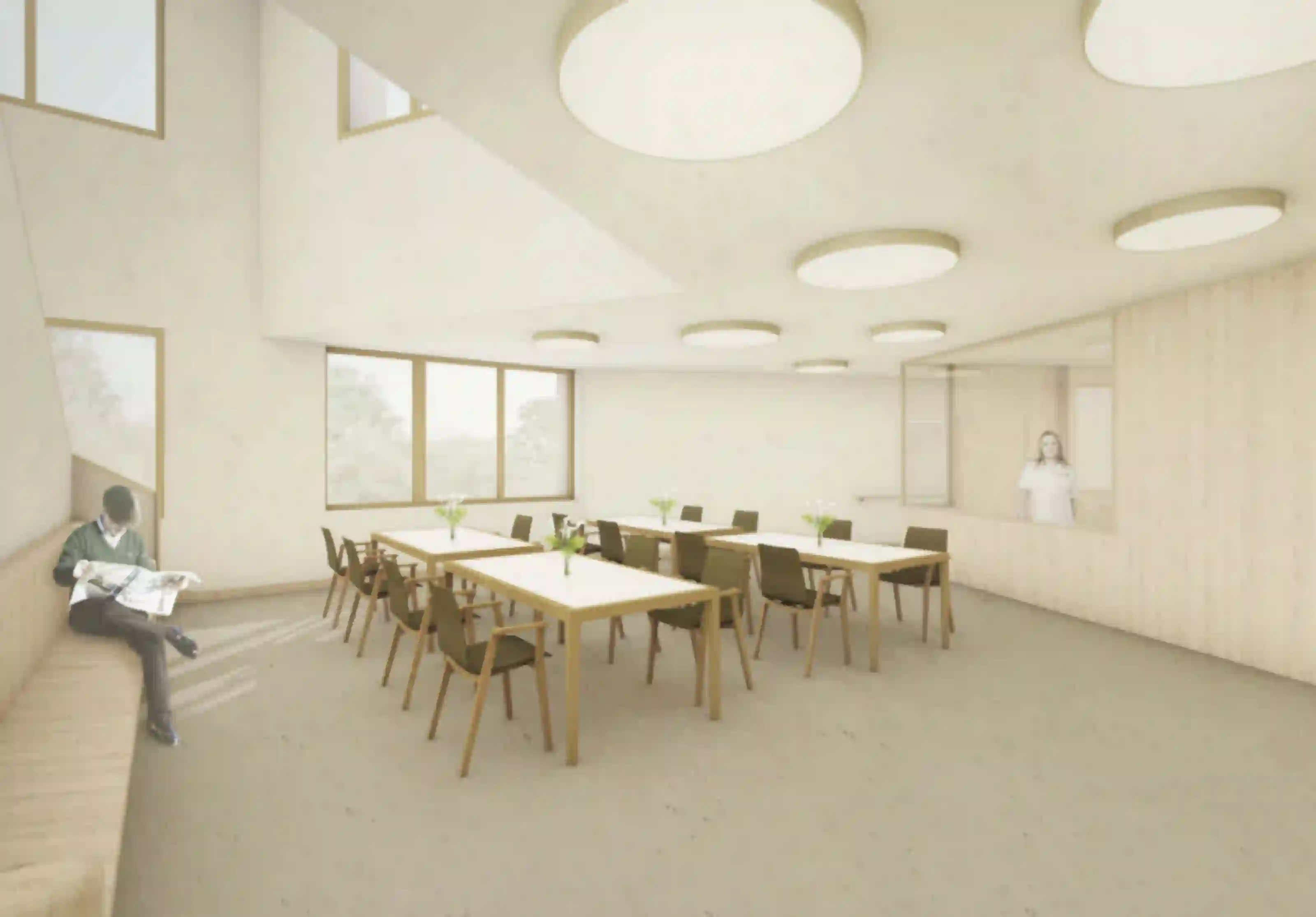 L’établissement médico-social de La Fondation Clémence est situé dans l’Ouest Lausannois, entre l’avenue de Morges au sud et le tranquille chemin de Renens au nord. La parcelle est marquée par une topographie accidentée qui descend de deux bons étages vers le sud. L’extension, une tour de huit étages au plan polygonal et une place de quartier longeant la très fréquentée avenue de Morges, constitue un important point de repère. Les trois premiers niveaux formant le socle intègrent les différentes entrées, les espaces professionnels et collectifs, l’unité de vie de courts-séjours ainsi qu’un accueil parascolaire ; quant aux étages supérieurs formant la tour, ils intègrent cinq unités de vie de longs séjours constitués des espaces privés et communs. Combiné avec l’existant, le nouveau plan des étages est plus ouvert et aéré ; ainsi, le couloir de distribution permet des échappées visuelles sur le quartier et le lac leman et, par endroit, s’agrandit et se transforme en des lieux de vie, d’échange ou de rencontre.