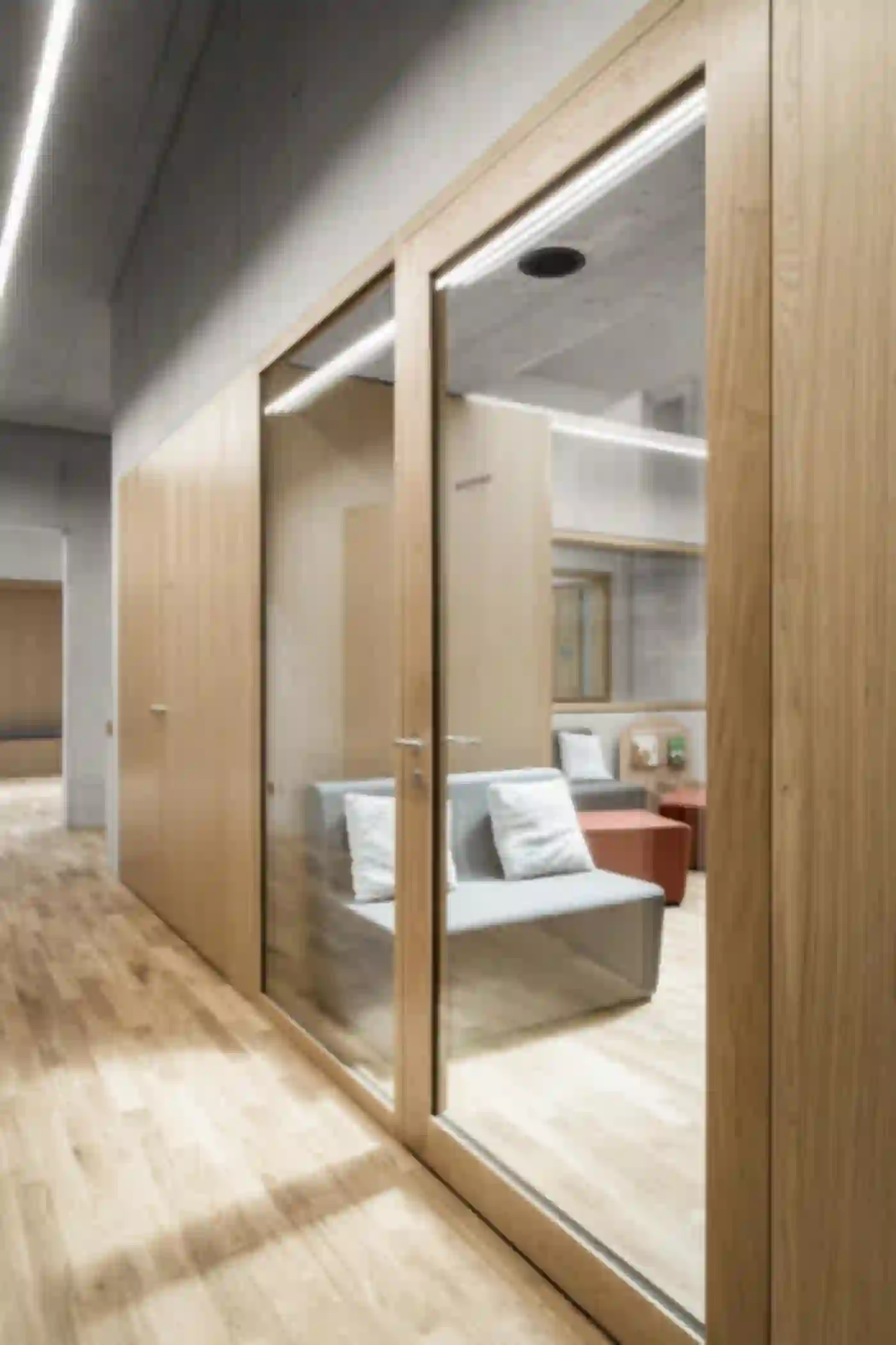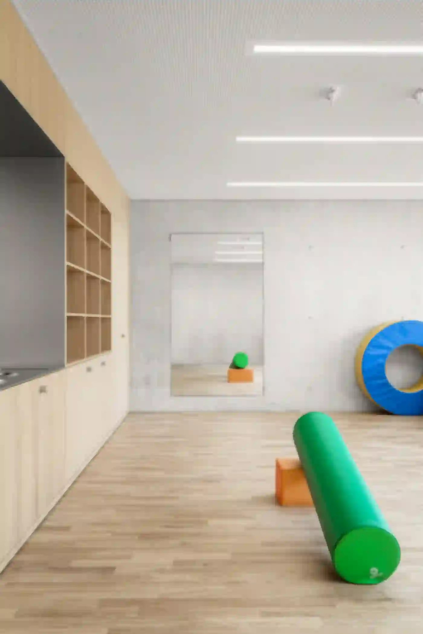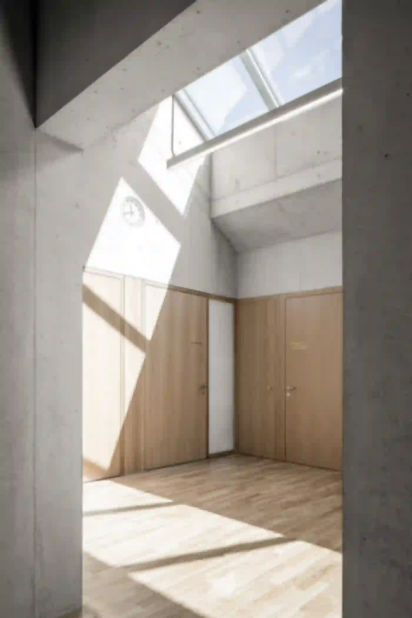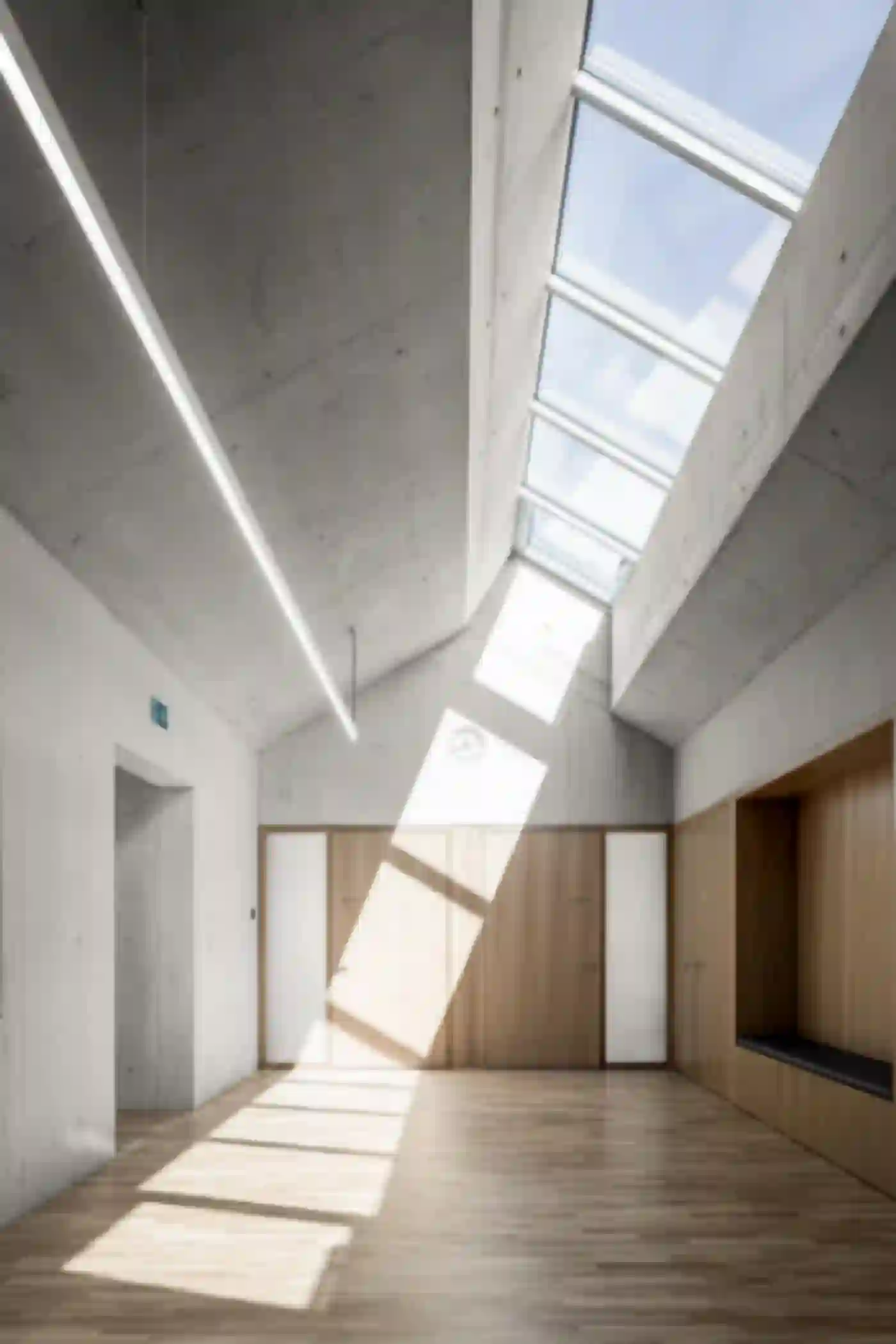 Der Neubau für die Fondation La Monneresse ist eine Förderschule für schwer erziehbare Kinder. Die Schule gliedert sich typologisch in zwei Teile – den Sockel mit übergeordneten Funktionen wie Verwaltung, Speiseraum und Eingangsbereich, und dem Klassentrakt im Obergeschoss. Man betritt das Gebäude zentral über ein Foyer mit Garderobe, von wo aus zwei Treppen zu den Unterrichtsbereichen führen. Dort umfassen je vier Klassen einen gemeinsamen Lerncluster. Die so entstehenden Raumeinheiten ermöglichen vielfältige Unterrichtskonfigurationen vom klassischen Frontalunterricht bis hin zu klassenübergreifendem Projektunterricht. Als Herzstück und von allen Klassenzimmern aus einsehbar lädt eine lichtdurchflutete Bibliothek zum Lesen und Stöbern ein. Eindeutiges Wiedererkennungszeichen des neuen Schulhauses ist sein mehrfach gefaltetes Dach. Gemeinsam mit einer klaren Materialisierung und Lichtführung verleiht es der Förderschule eine eigenständige Note.